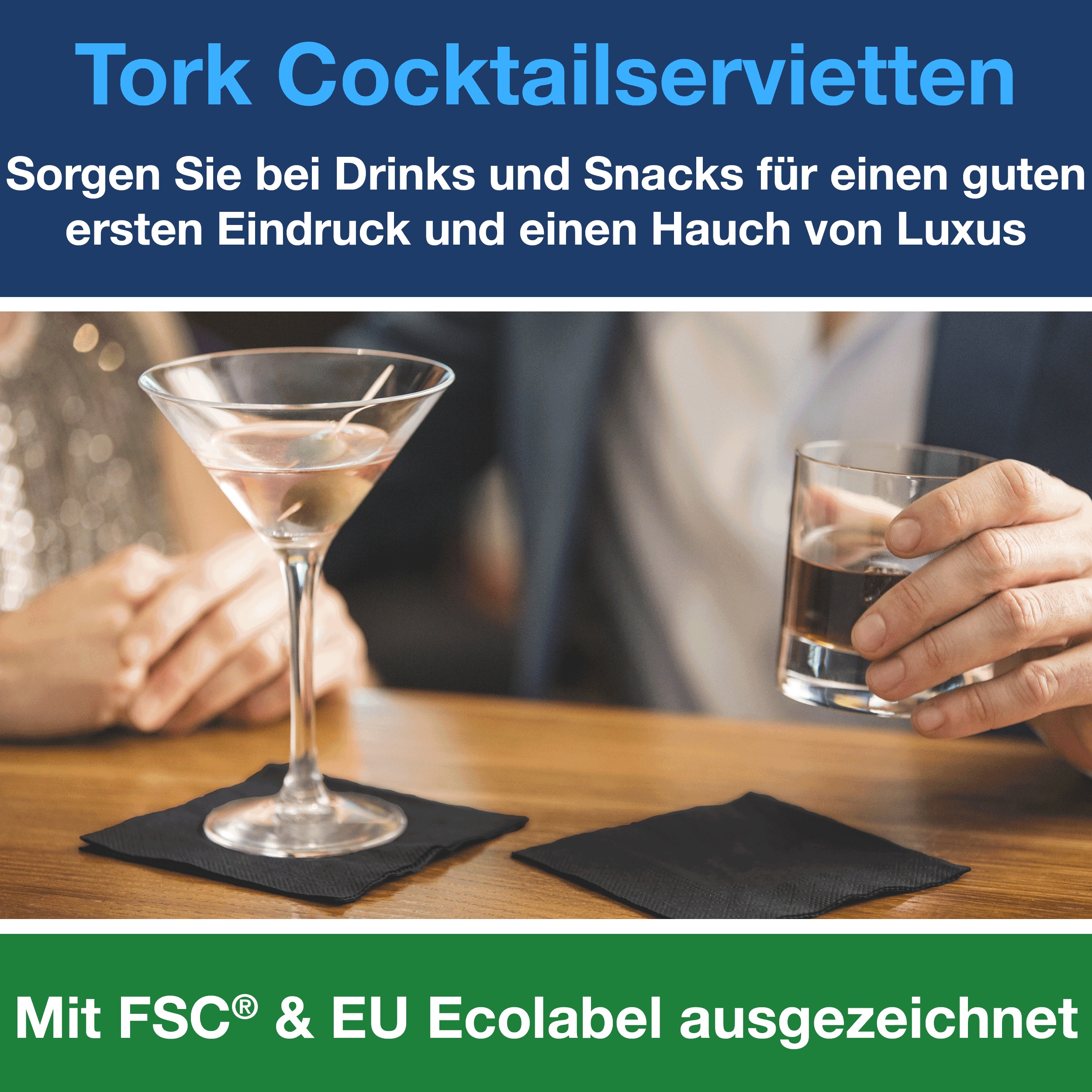 Tork Cocktailservietten Schwarz – 2-lagige Qualität im eleganten Format