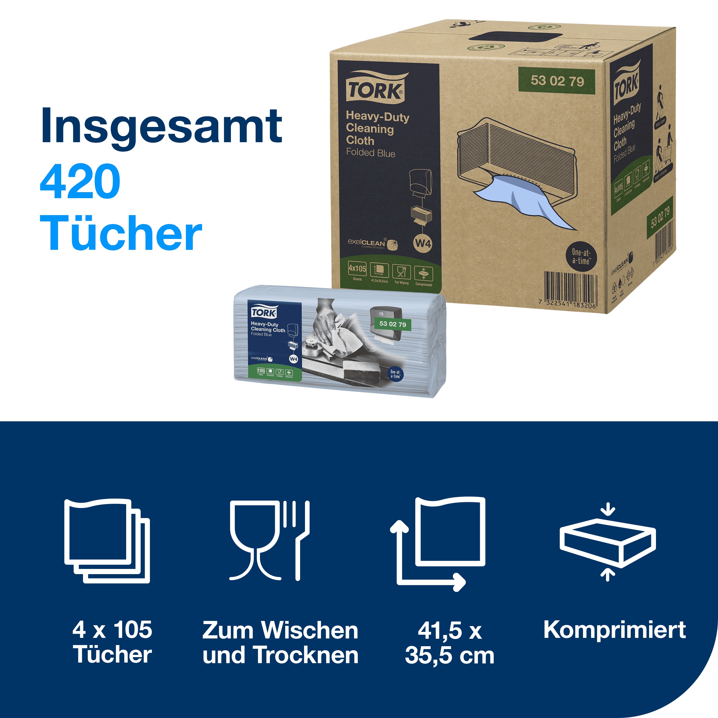 Mit den Tork Extra Starken Reinigungstüchern Blau W4 arbeiten Sie schneller, sauberer und wirtschaftlicher. Jetzt bestellen → stark, effizient & professionell.