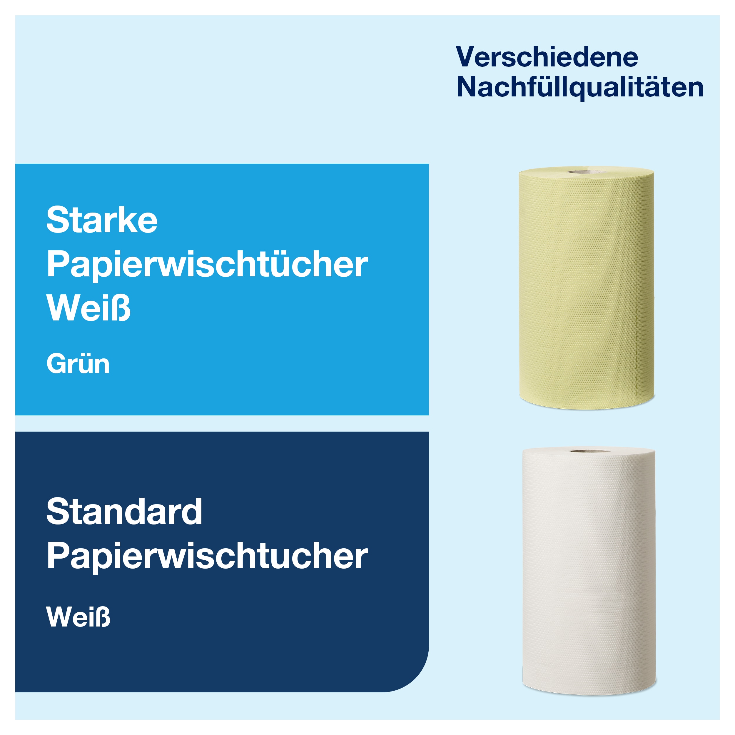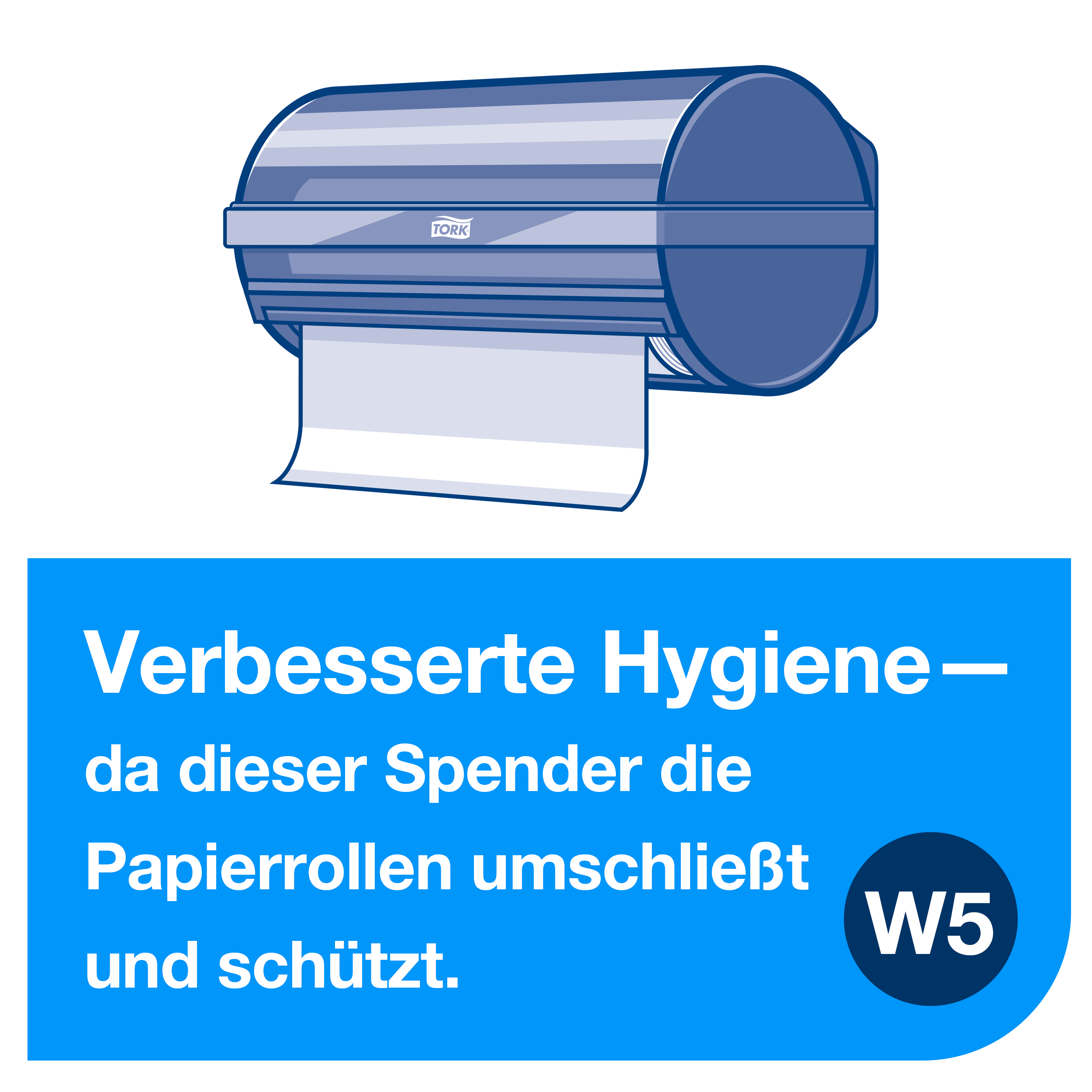 Kombinierbar mit Tork W5 Papierrollen, Reinigungs- & Wischtüchern sowie Hygienezubehör.