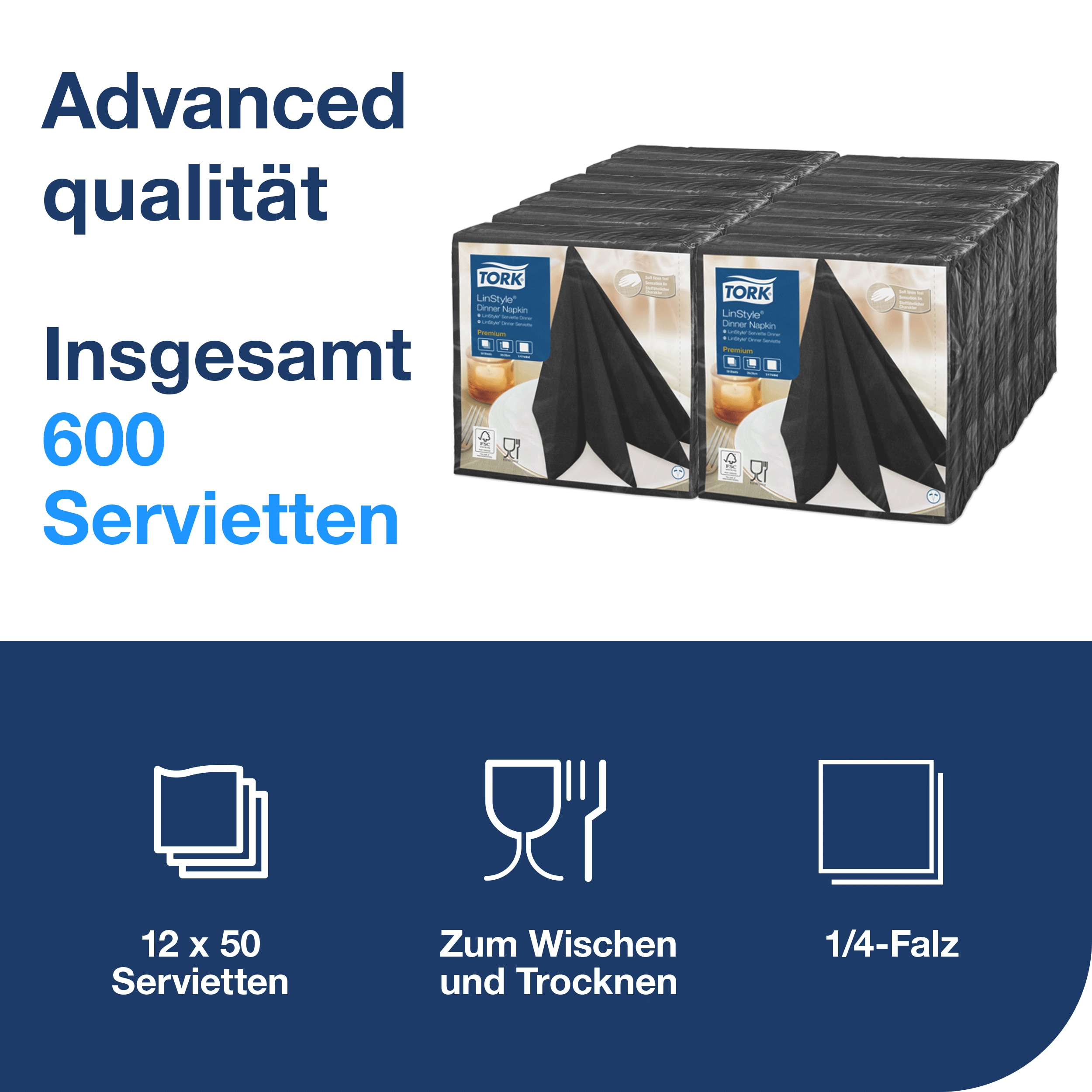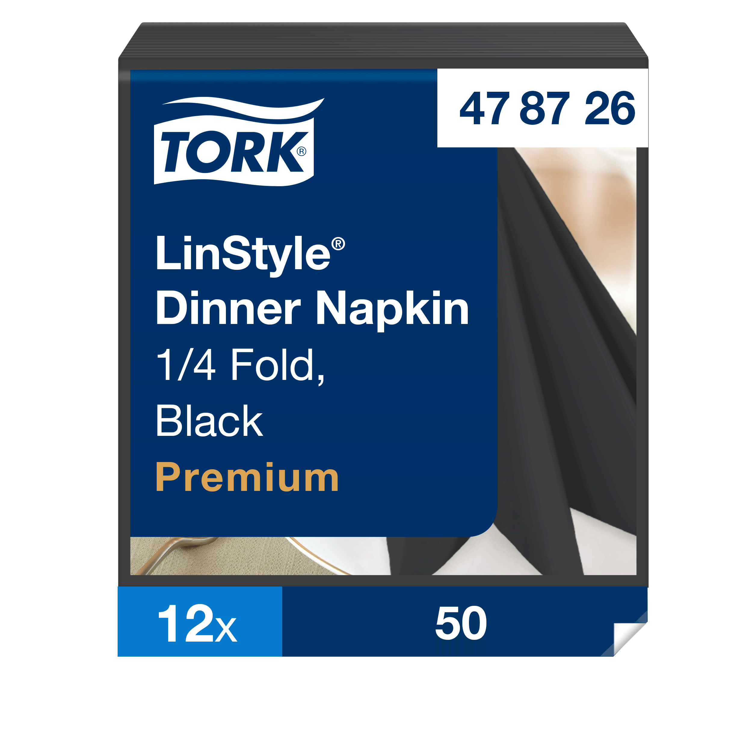 Produktinformationen "Tork LinStyle® Dinnerservietten Schwarz – 1/4-Falz"