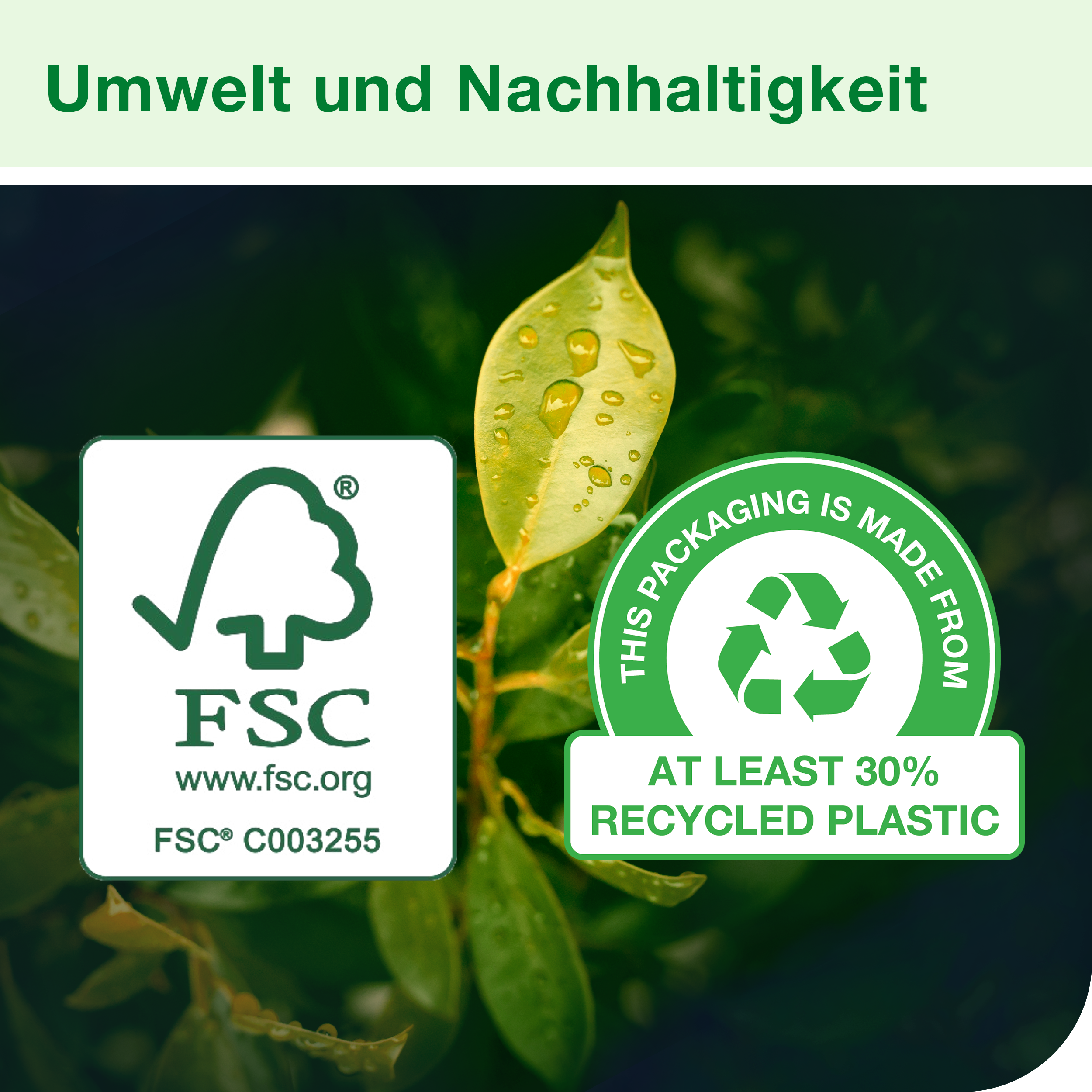 Tork setzt auf ressourcenschonende Materialien, FSC®-zertifizierte Papiere und Prozesse, die Abfall reduzieren und CO₂-Emissionen senken – für messbar bessere Umweltbilanzen.
