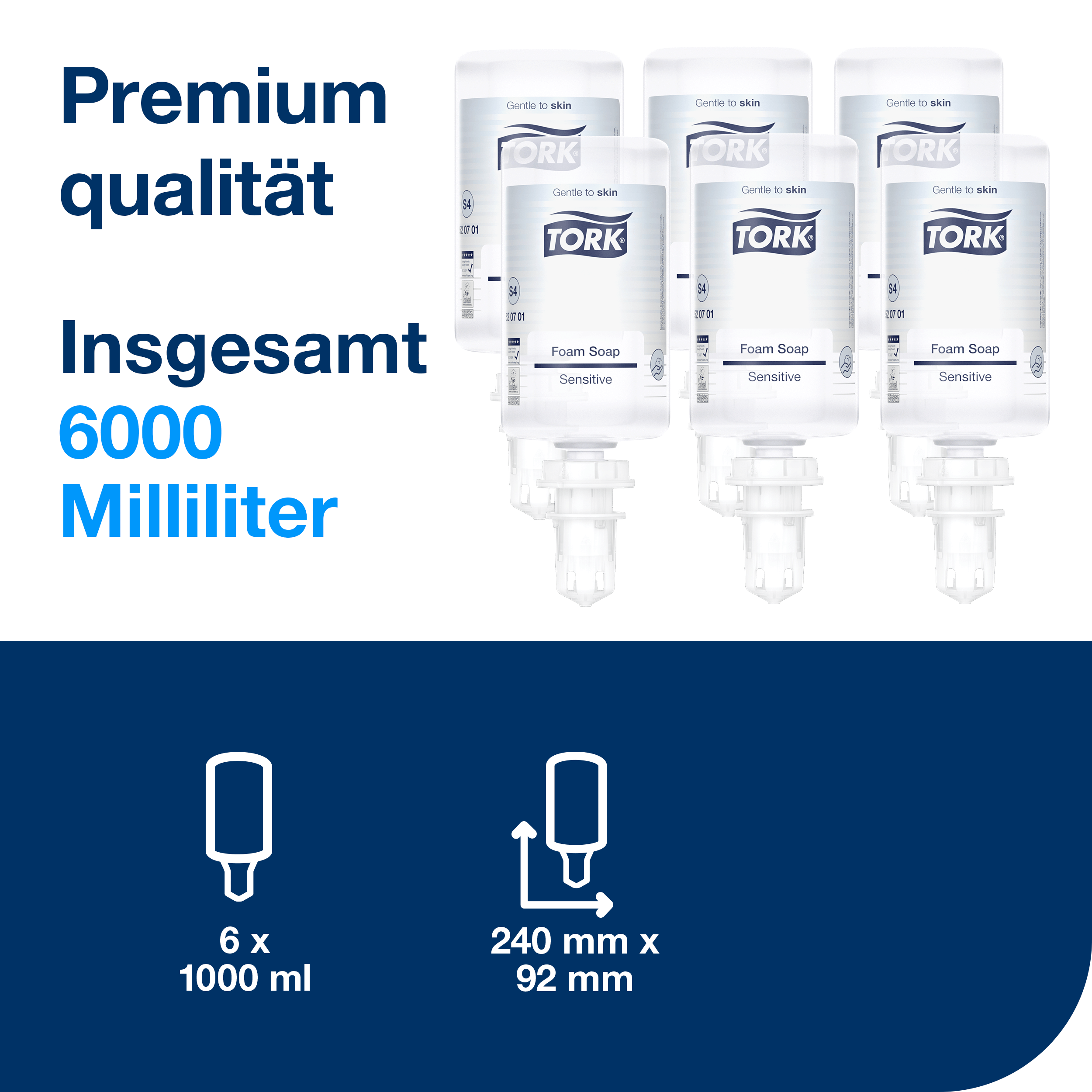 Produktinformationen "Tork Sensitive Hand Schaumseife S4 – milde Pflege und Reinigung für sensible Haut."