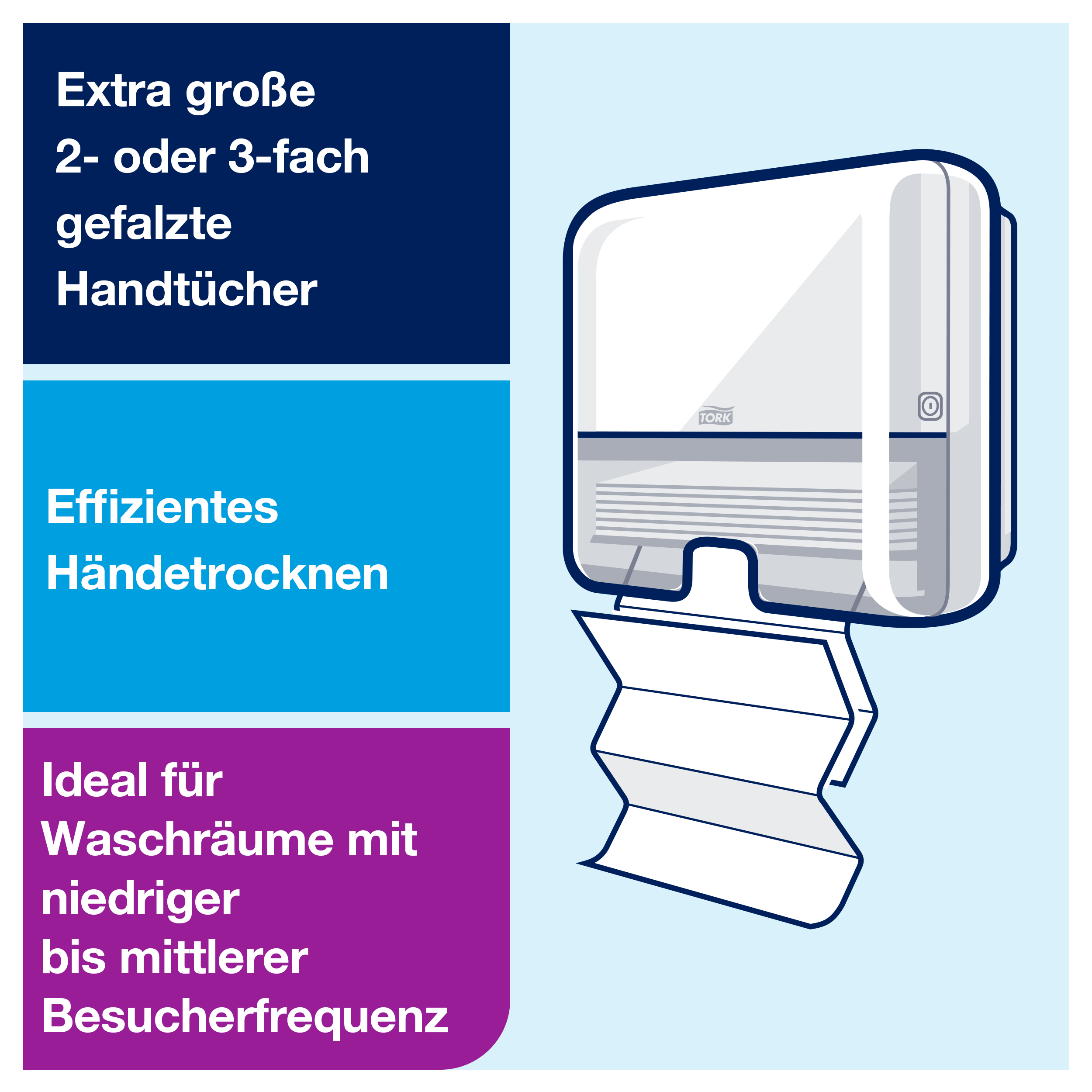 - ✓ Kompatibel mit allen Tork H2 Multifold-Handtüchern