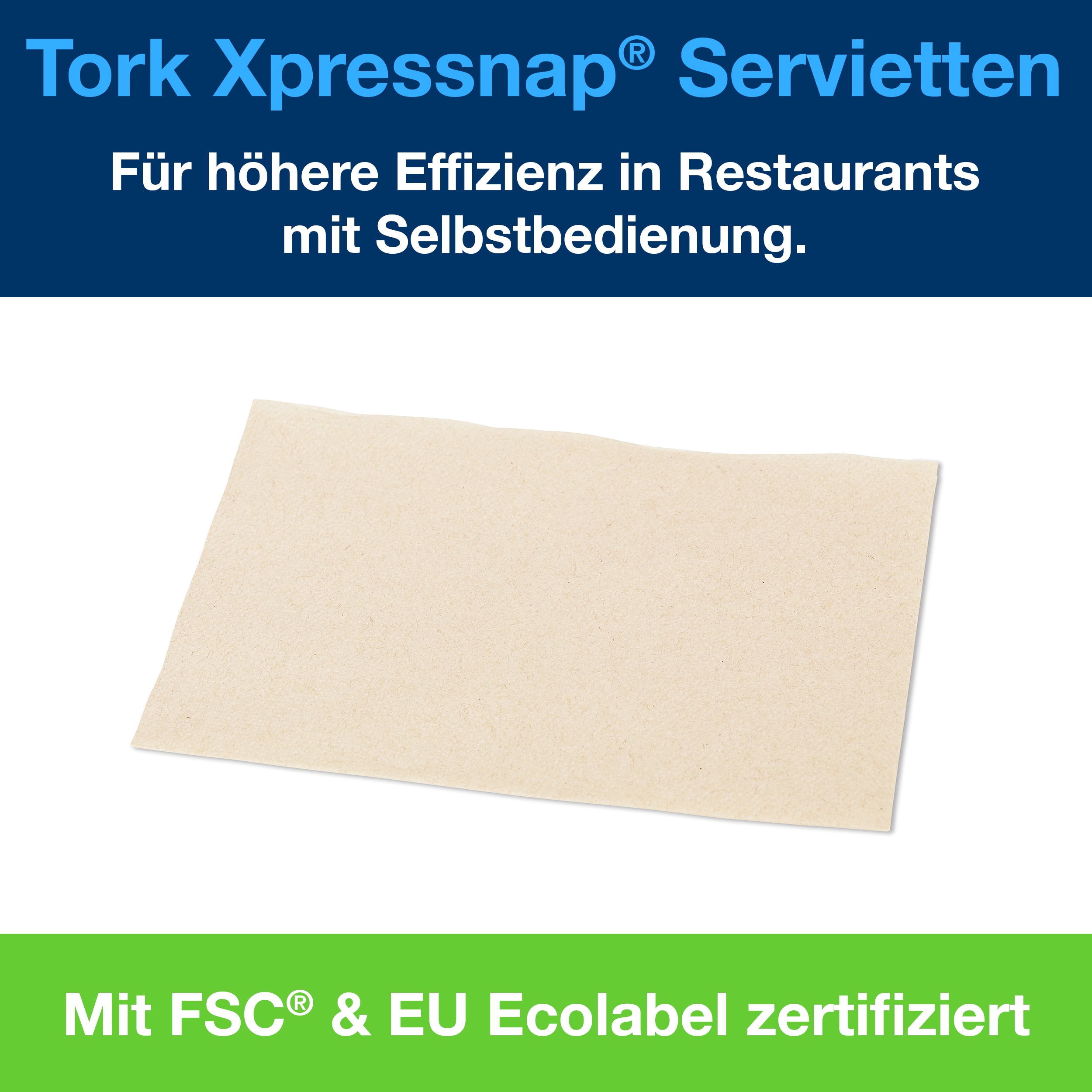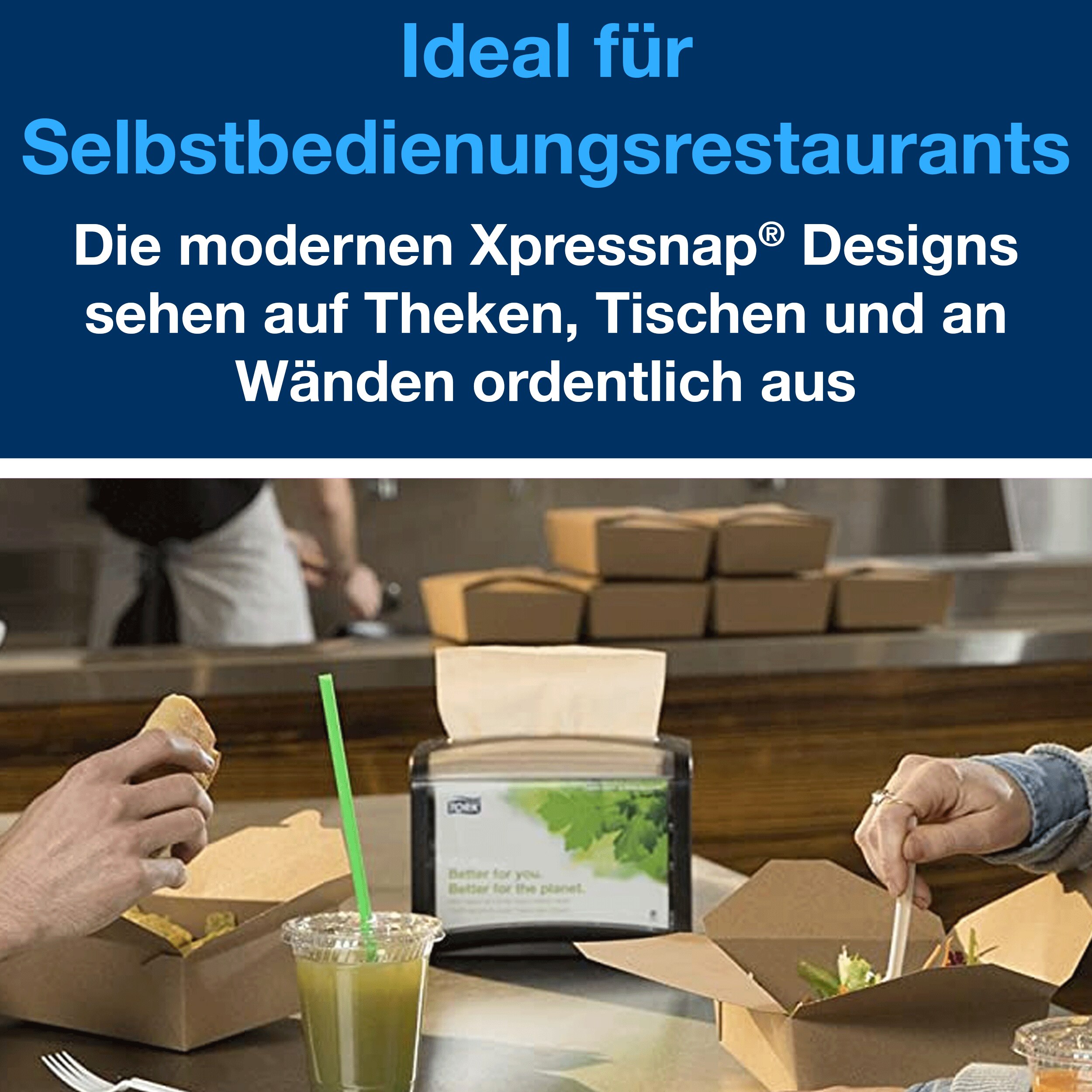 Ideal für Gastronomiebetriebe, die nach kompostierbaren Naturservietten mit Einzeltuchausgabe suchen. Diese Tork Xpressnap® Servietten fördern Hygiene, Sparsamkeit und Umweltbewusstsein in einem praktischen System – perfekt für moderne Selbstbedienungsrestaurants und Cafés.