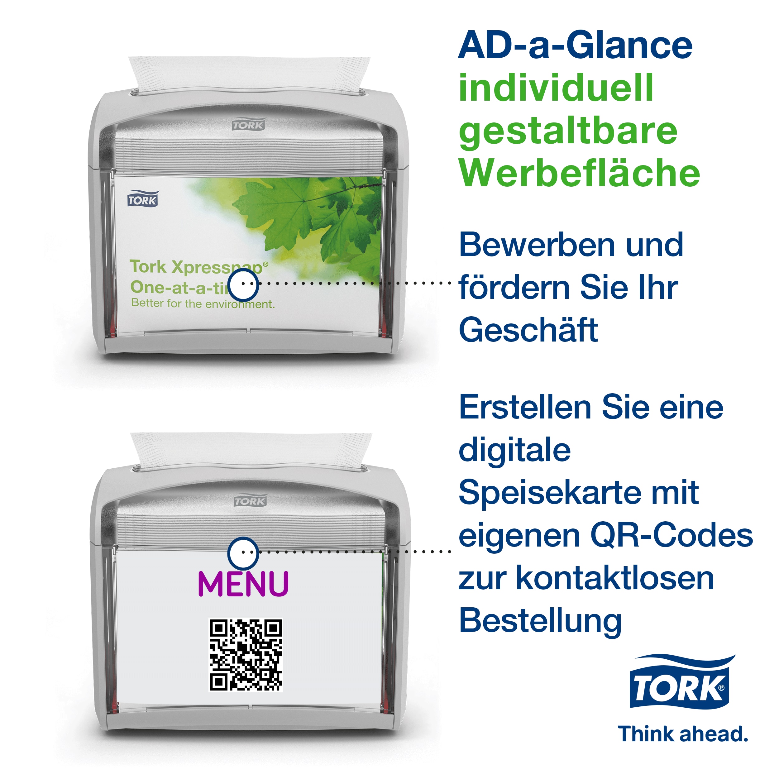 Durch die reduzierte Einzelnutzung und das robuste Design wird Abfall minimiert und die Lebensdauer des Spenders verlängert. Das AD-a-Glance® Display ermöglicht zusätzliche Kommunikation oder Werbung am Tisch – eine praktische Kombination aus Funktion und Marketing.