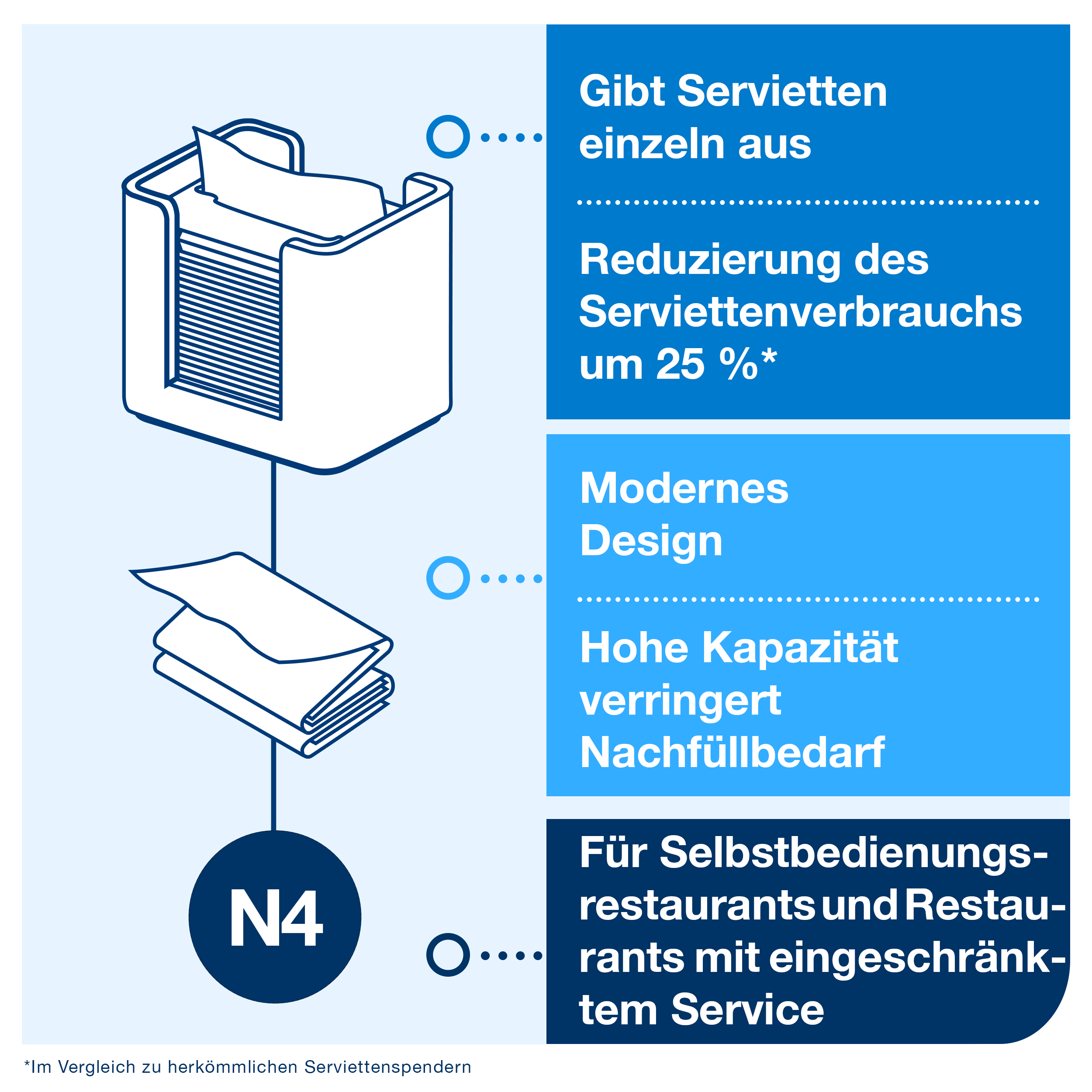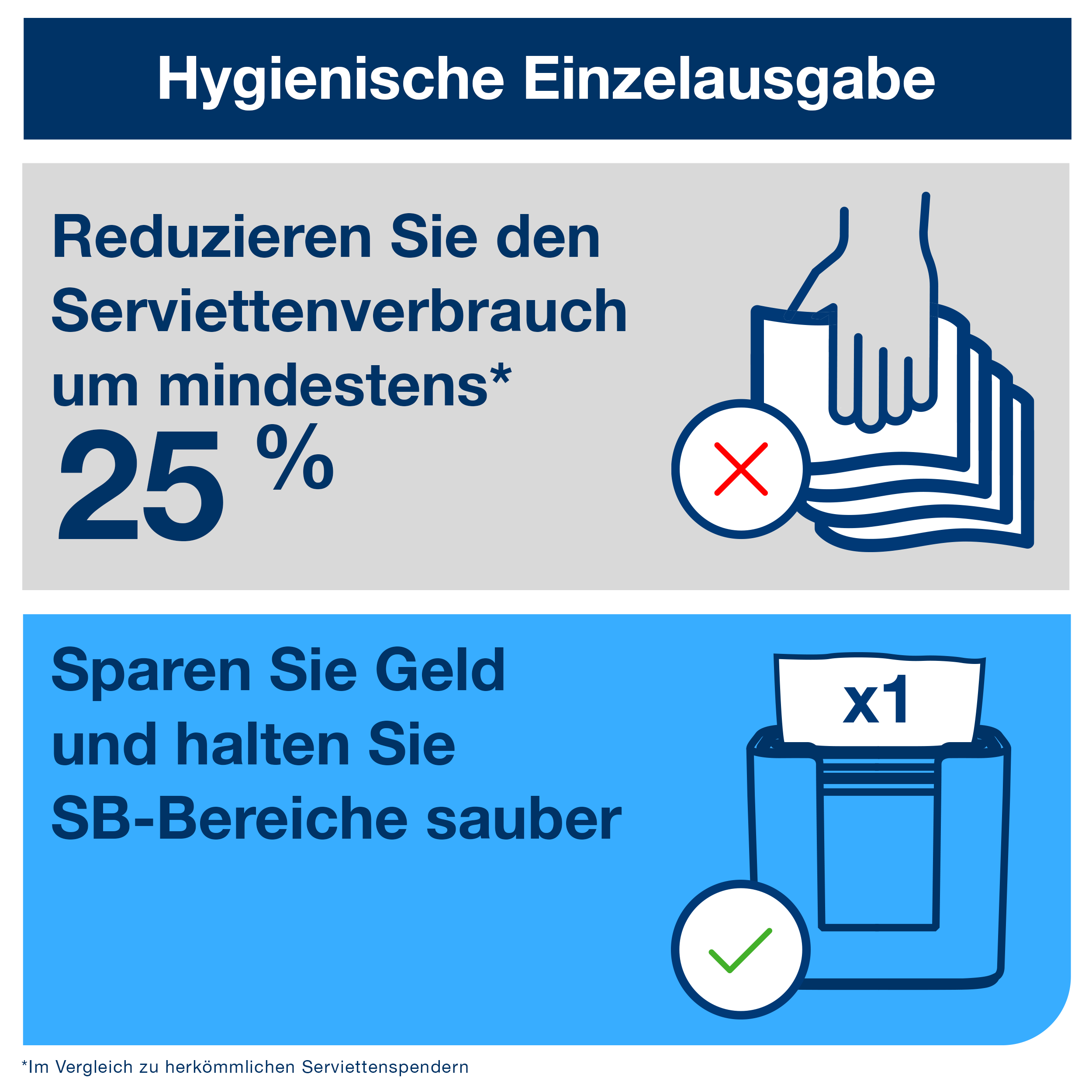 Mindestens 25 % weniger Serviettenverbrauch im Vergleich zu herkömmlichen Spendern.