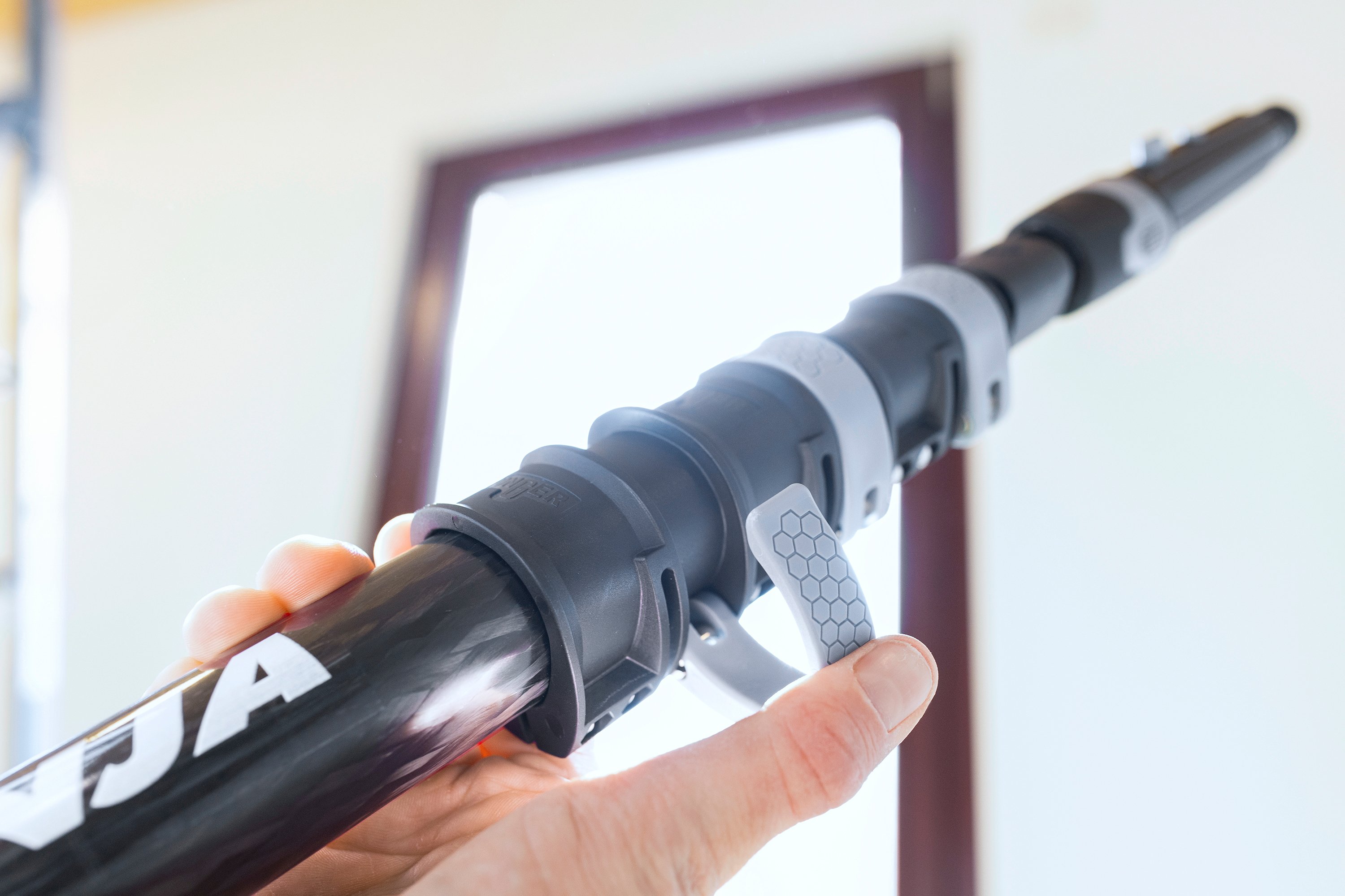 Dank Carbon-Material ist die Teleskopstange besonders leicht und dennoch äußerst robust.