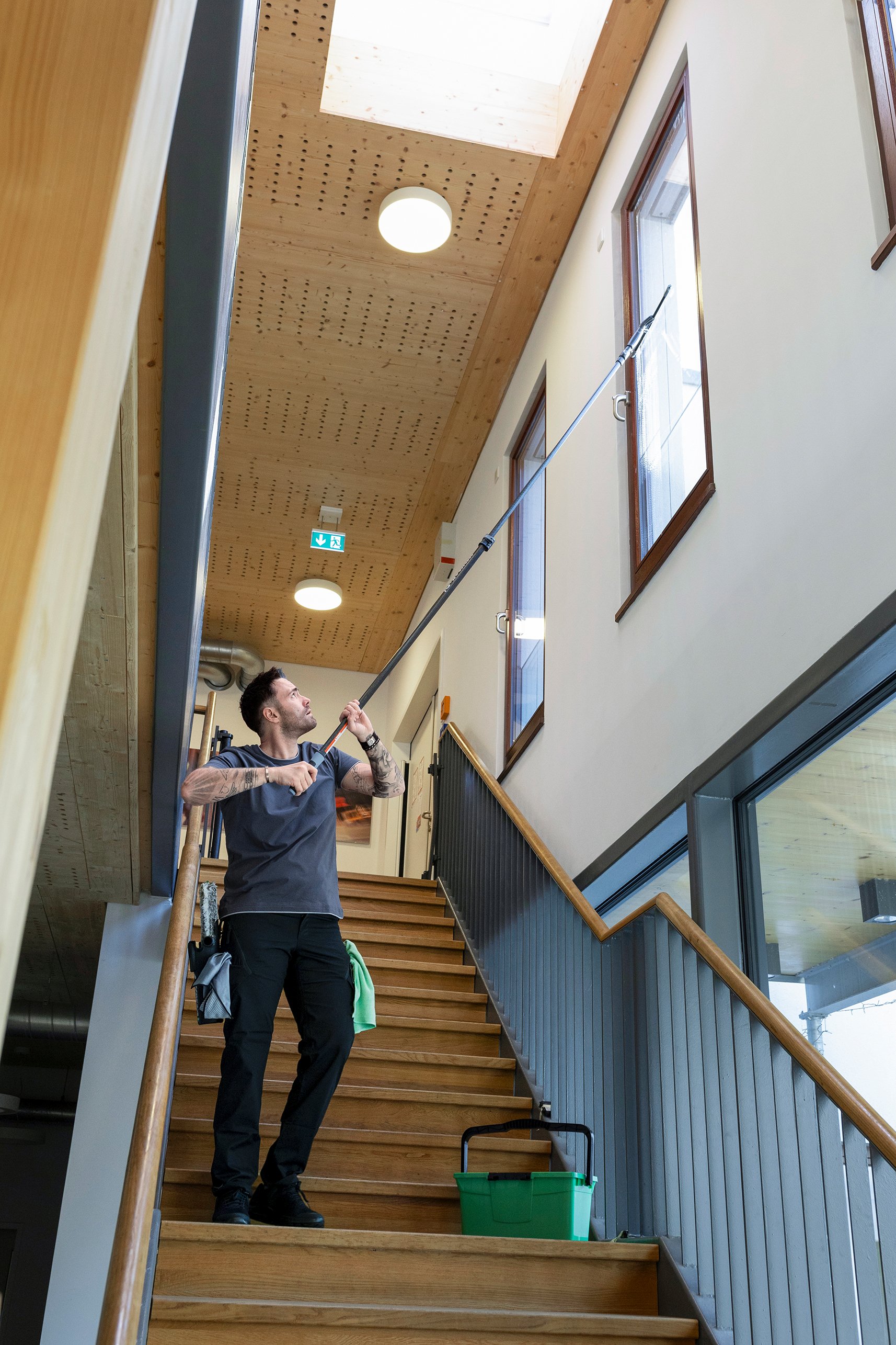Die UNGER NINJA Carbon Teleskopstange ist leicht, stabil und optimal für professionelle Glasreinigung an schwer erreichbaren Stellen.
