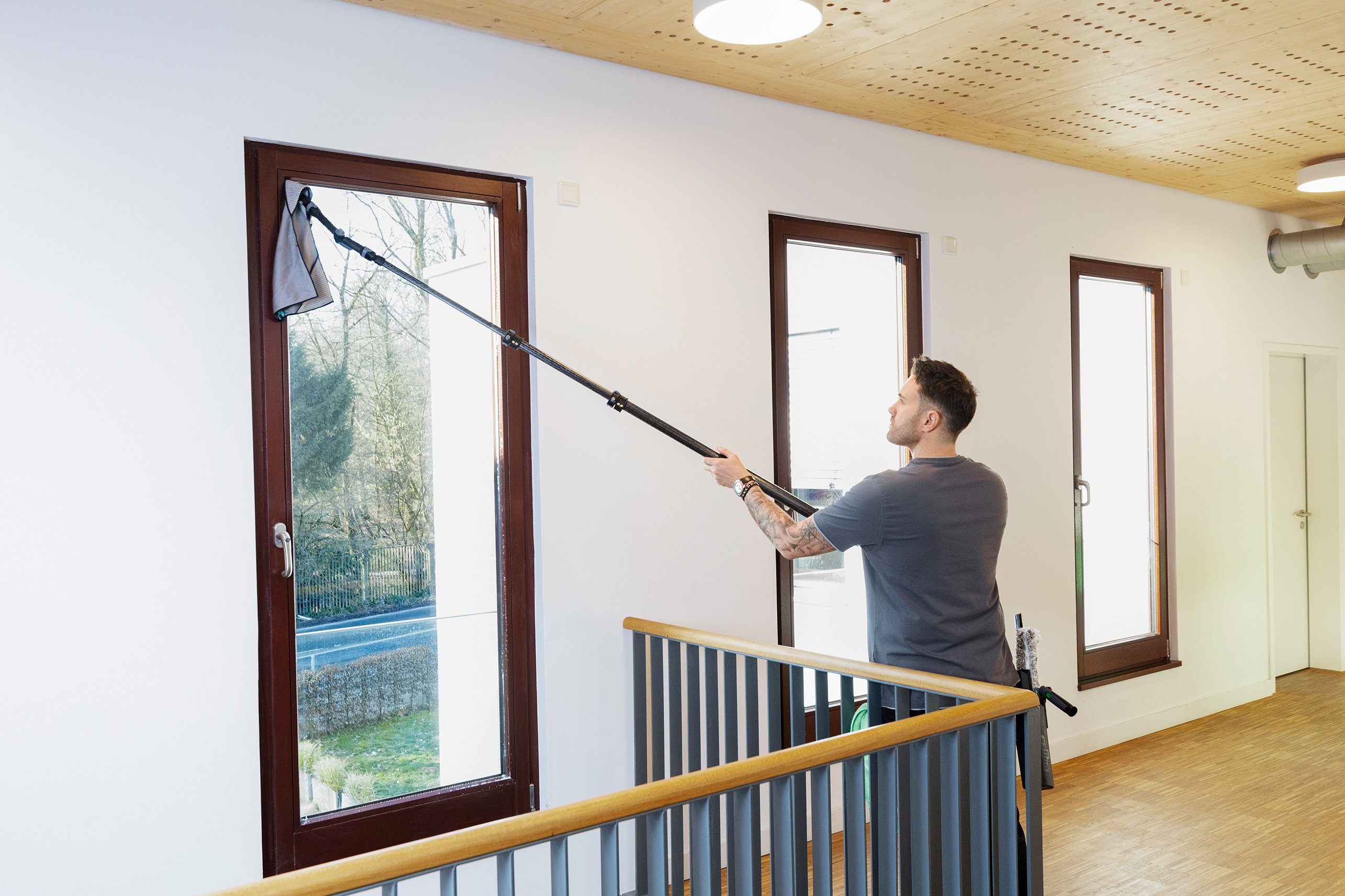 Ergonomische Teleskopfunktion: Ausziehbar auf verschiedene Längen für Fenster, Glasfassaden oder Wintergärten.