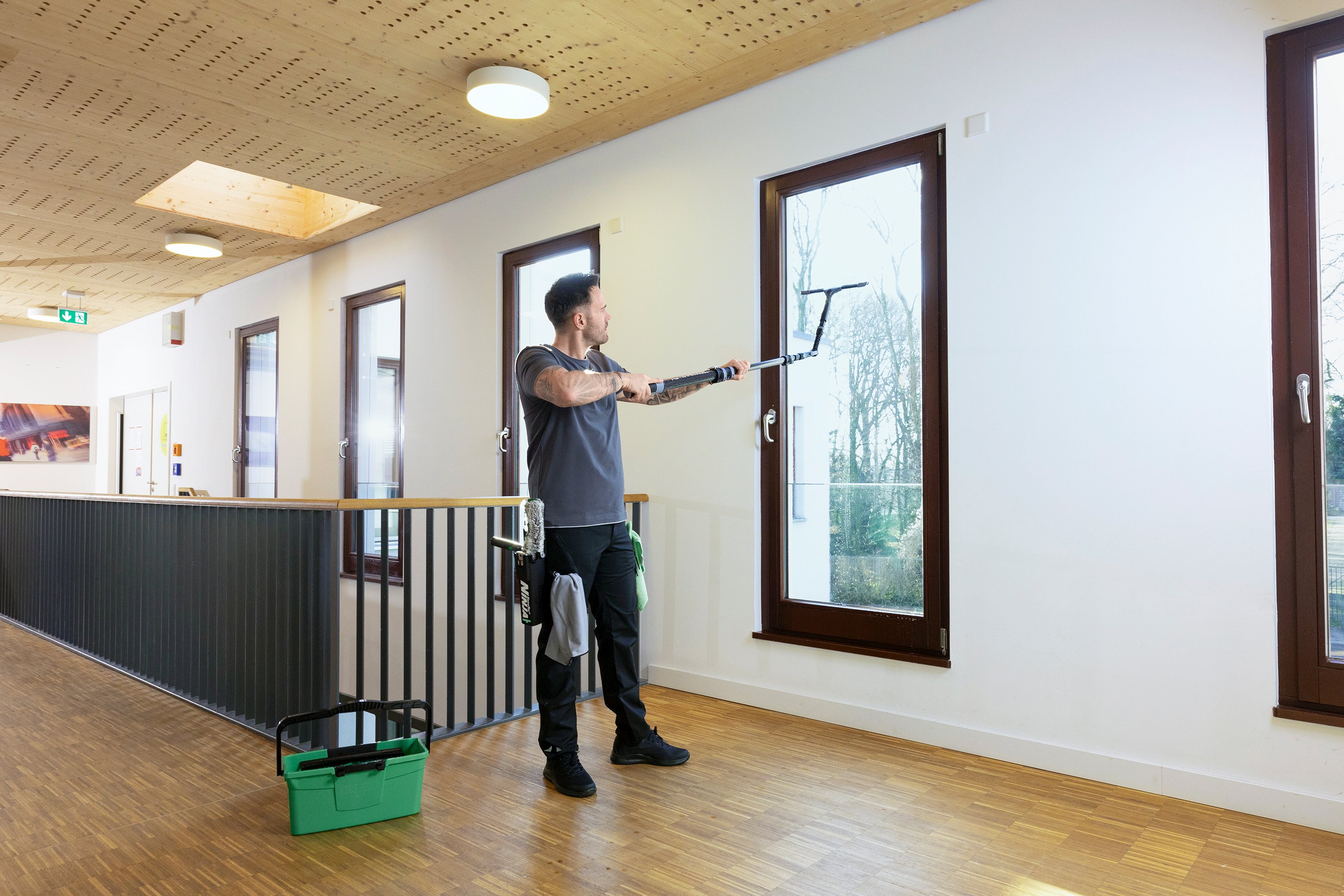 Ergonomische Teleskopfunktion: Ausziehbar auf verschiedene Längen für Fenster, Glasfassaden oder Wintergärten.