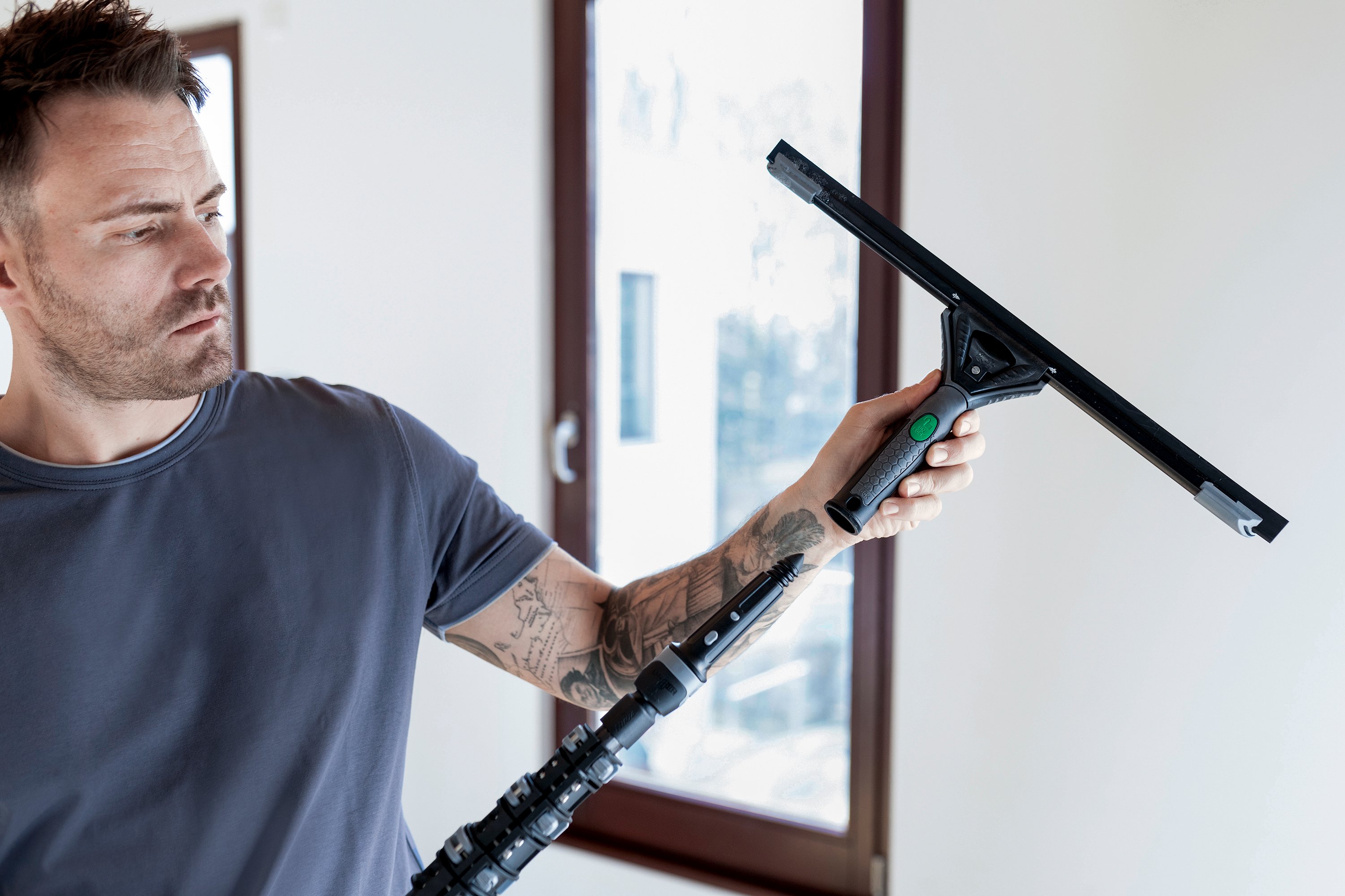 Ergonomische Teleskopfunktion: Ausziehbar auf verschiedene Längen für Fenster, Glasfassaden oder Wintergärten.